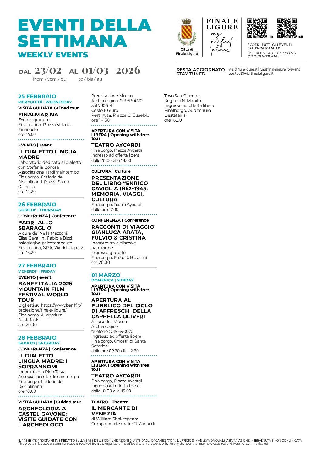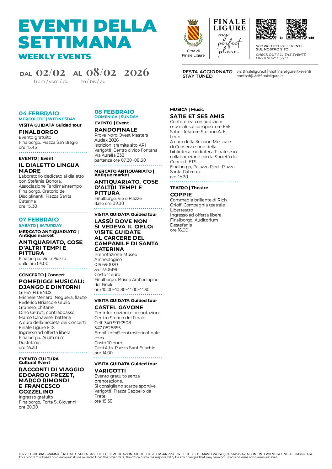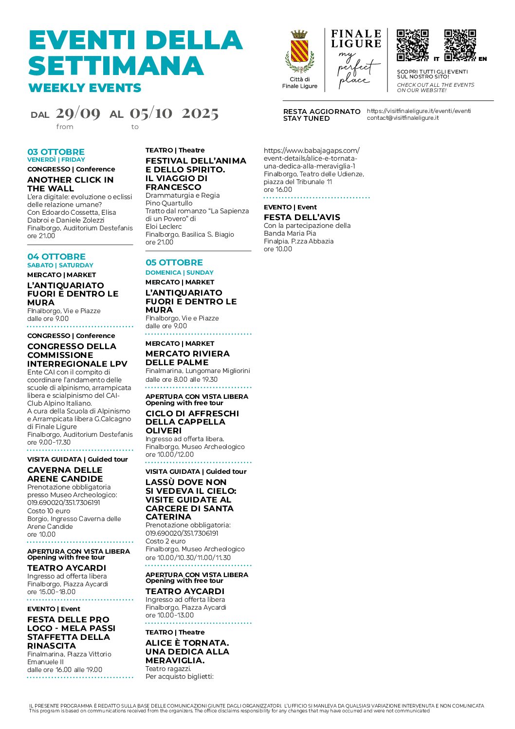 VERANSTALTUNGSKALENDER FINALE LIGURE