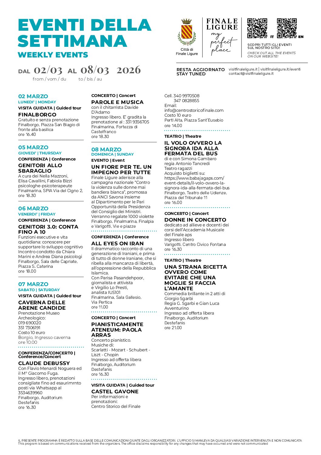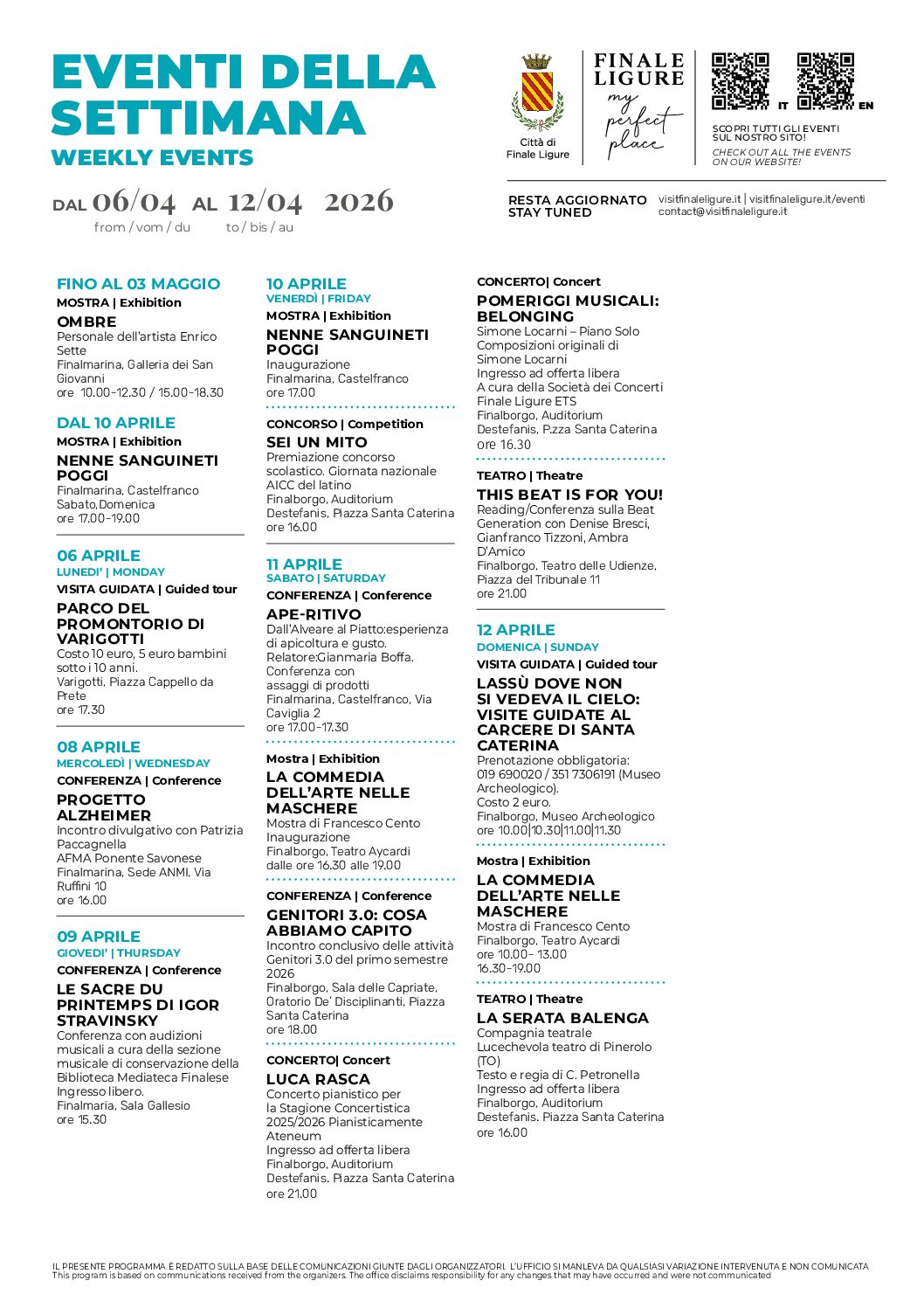 FINALE LIGURE EVENTS CALENDAR
