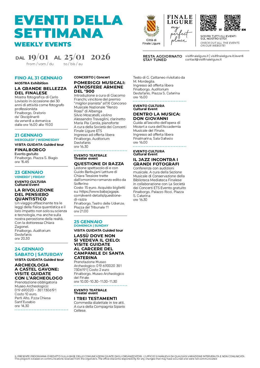 FINALE LIGURE EVENTS CALENDAR