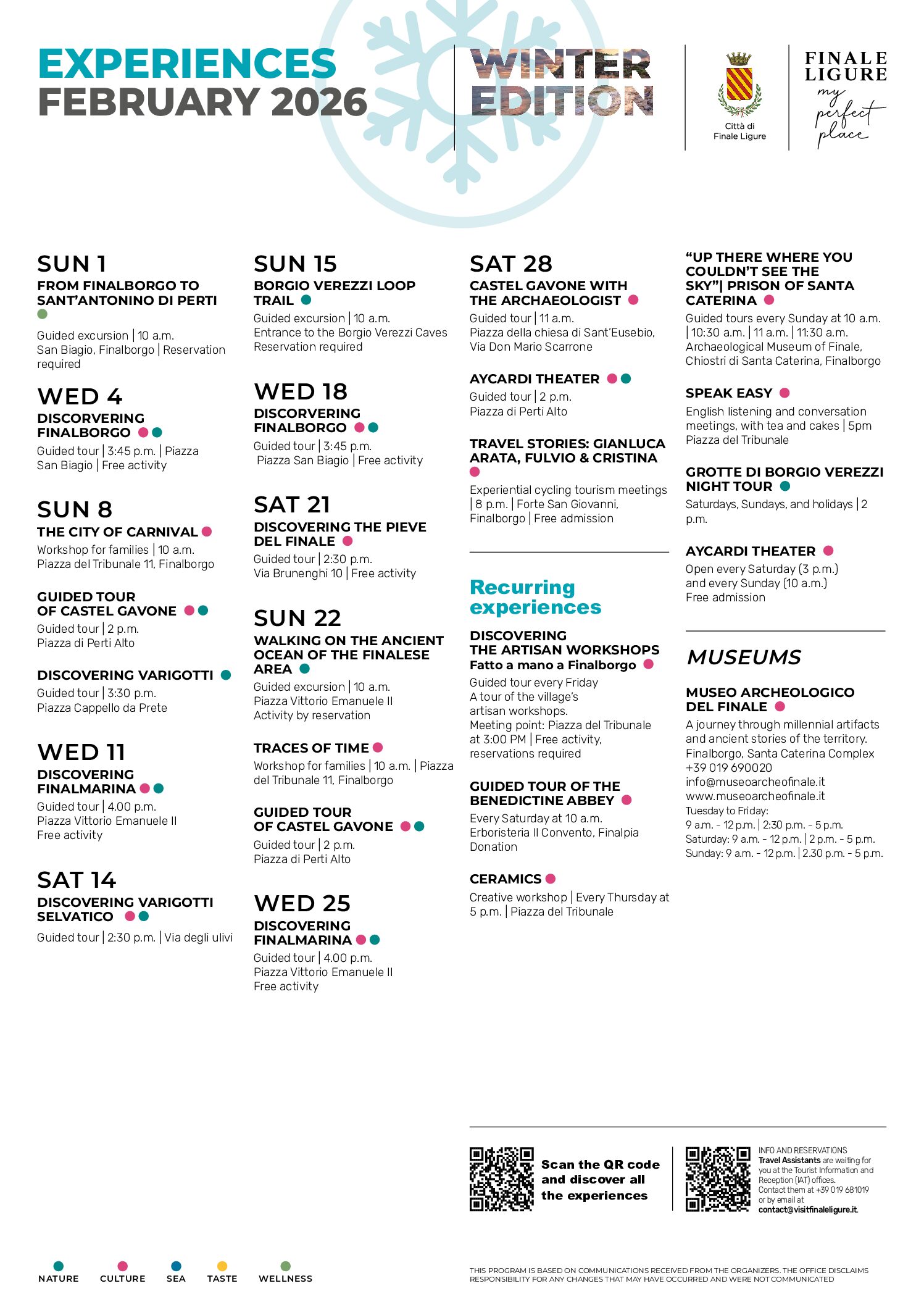 - find inspiration for organizing your time in Finale Ligure, following the rhythm of the season.