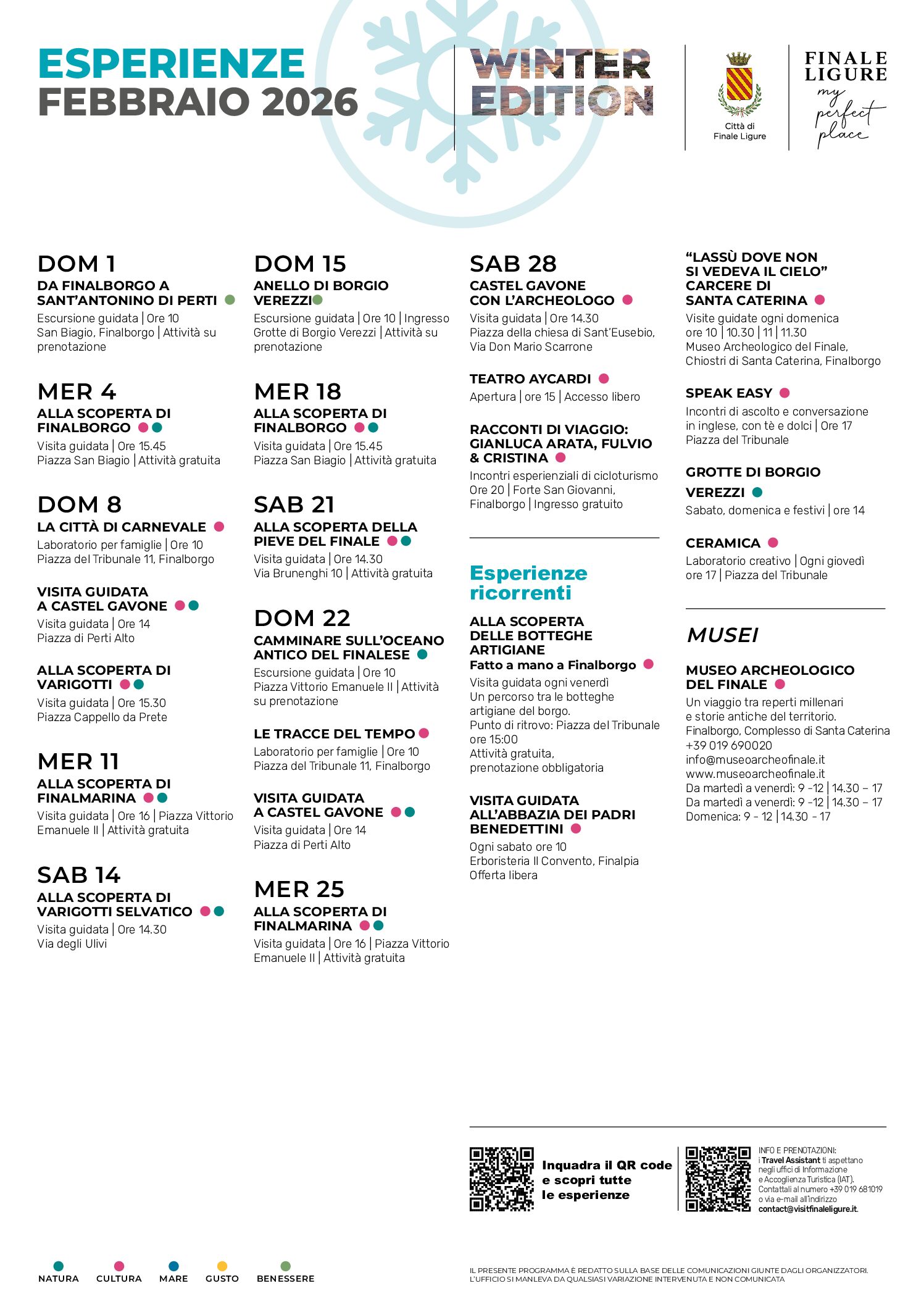 A Finale Ligure l’inverno è la stagione ideale per rallentare, respirare e scoprire il territorio con occhi nuovi. Ogni periodo dell’anno ha il suo ritmo, e anche nei mesi più freddi ogni giornata può trasformarsi in quella giusta per vivere un’esperienza speciale, tra mare, borghi storici e natura silenziosa.